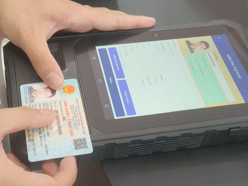 Người tiếp nhận thu thập thông tin nhân dạng và sinh trắc học, bao gồm ảnh khuôn mặt, vân tay và mống mắt.