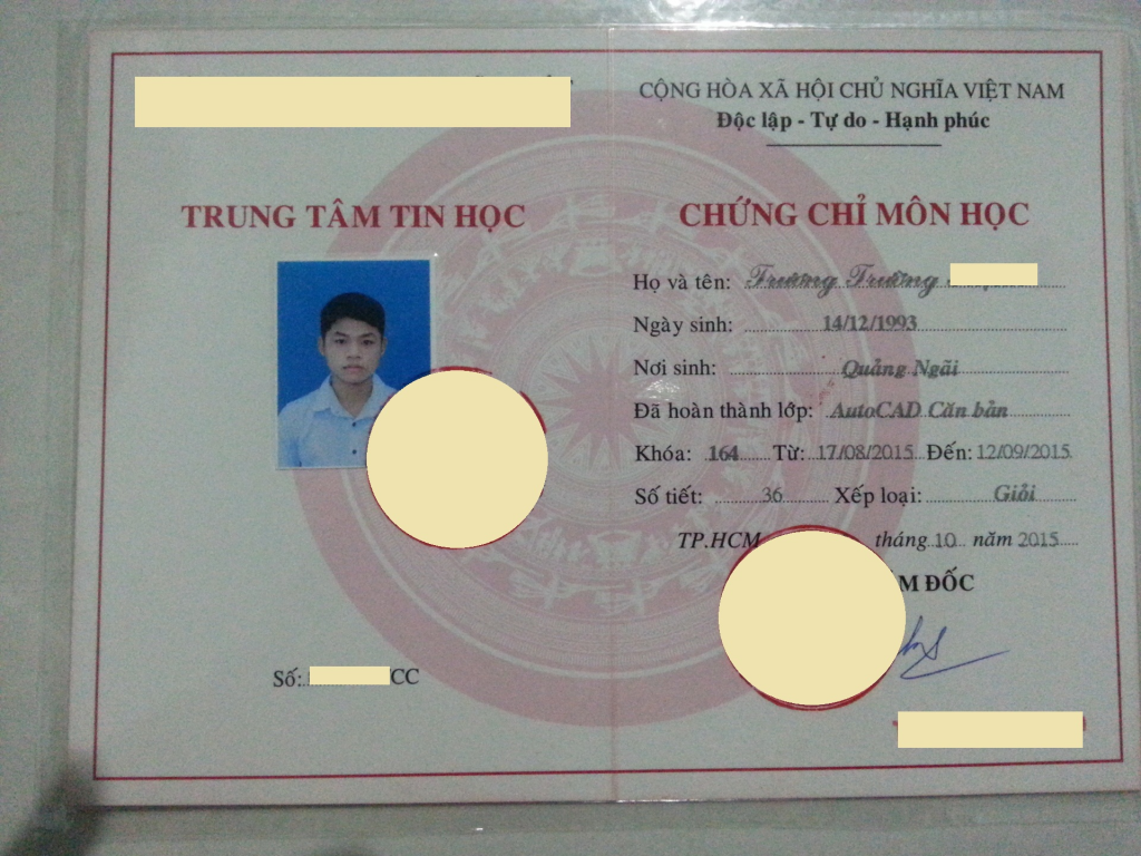 Chỉ với một cuộc điện thoại và tốn vài triệu đồng, các bạn có thể sở hữu ngay cho mình chứng chỉ autocad giả phôi thật 100% bao check trên toàn quốc. Nếu các bạn còn đang quan tâm về dịch vụ này, hãy cùng chúng tôi tìm hiểu thêm các chất lượng dịch vụ cũng như sự tin tưởng của khách hàng trên cả nước đã làm và rất hài lòng về dịch vụ của chúng tôi.