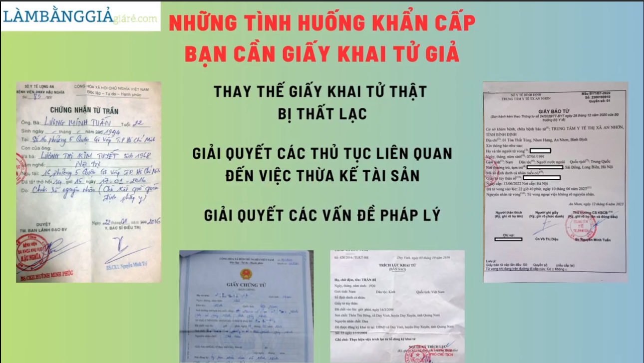 Dịch vụ làm giấy khai tử giả tại Làm Bằng Giả Giá Rẻ